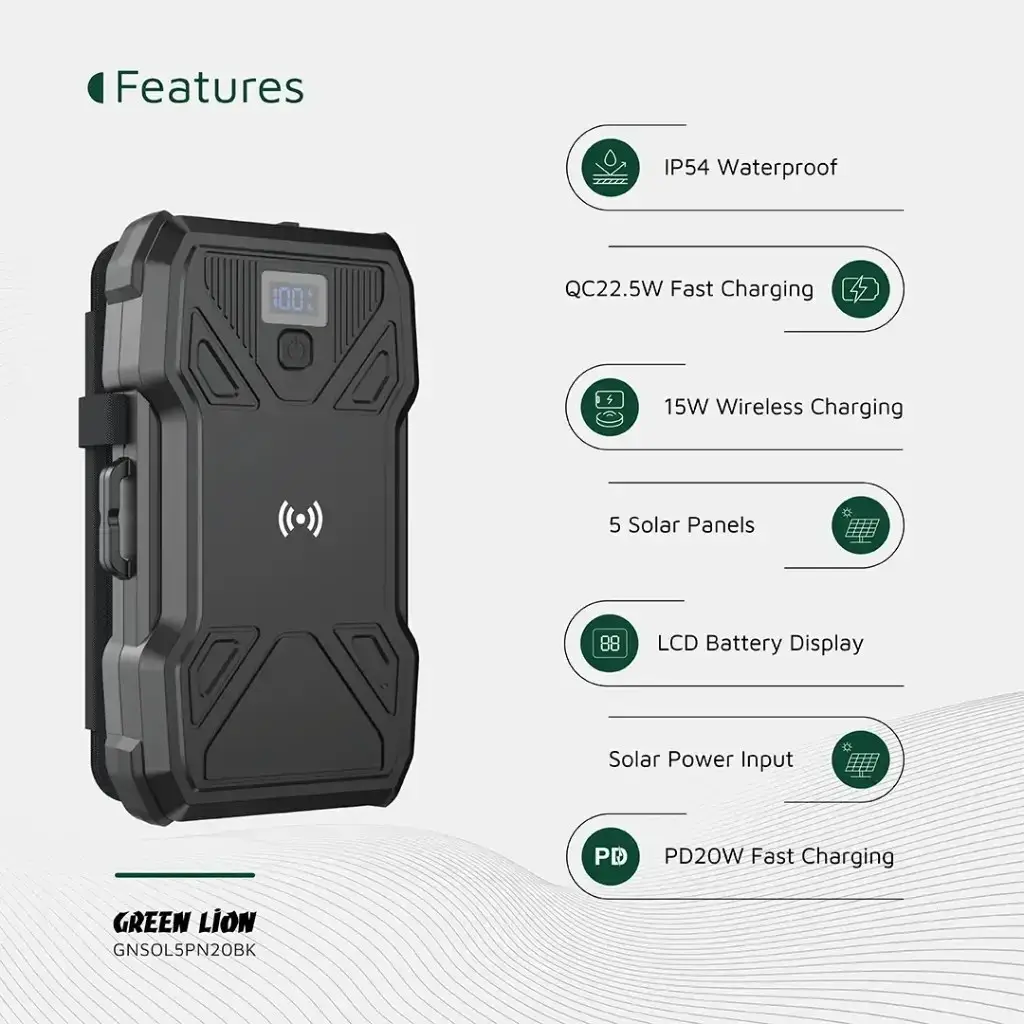 مدل: Solar 20000mAh (5 پنل)